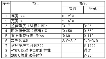 HDPE土工膜技術(shù)指標(biāo)