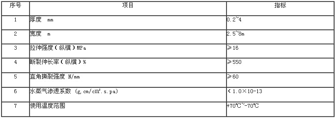 EVA土工膜技術(shù)指標(biāo)