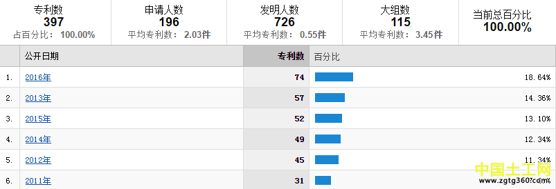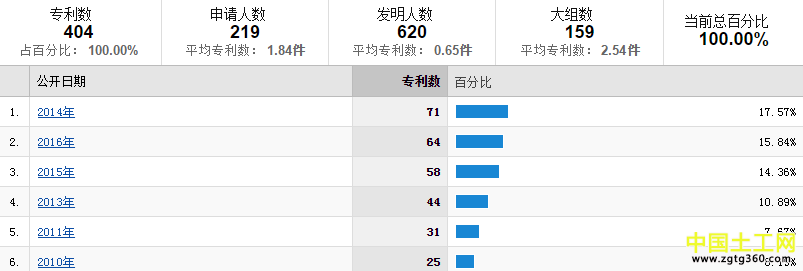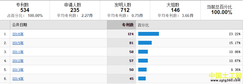 以申報(bào)專利為例,分別以“土工格柵”、“土工布”、“土工膜”為關(guān)鍵詞進(jìn)行檢索,各自的數(shù)量分別為534項(xiàng)、404項(xiàng)、397項(xiàng),且主要集中在近5年內(nèi)。