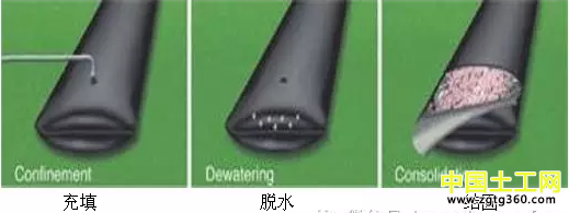 固結(jié):固體顆粒留存管袋中。